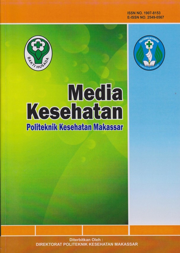 Jurnal Media Kesehatan Poltekkes Kemenkes Makassar adalah jurnal dengan reviewer teman sejawat sesuai dengan bidang keilmuannya yang dikembangkan untuk mendorong pengembangan keilmuan dalam bidang kesehatan secara umum sehingga dapat menjadi sumber referensi dalam mendukung terselenggaranya pelayanan kesehatan yang berbasis Evidence Based Practice di Indonesia. Selain itu, jurnal itu menjadi wadah bagi peneliti dalam bidang ilmu kesehatan untuk mempublikasikan hasil penelitiannya sehingga mampu memperkaya referensi ilmiah yang dapat dimanfaatkan untuk meningkatkan kualitas sumber daya manusia kesehatan di Indonesia