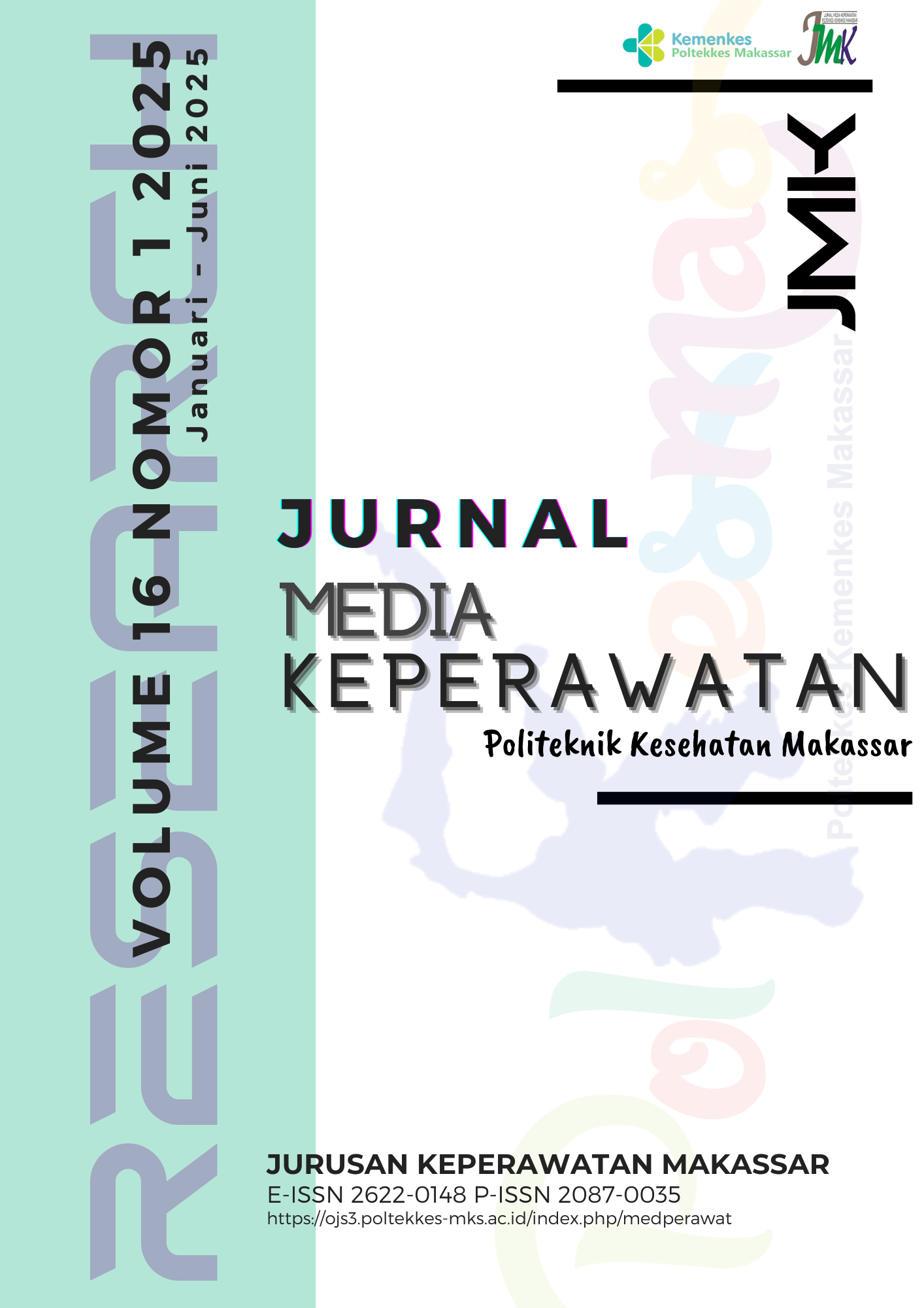Vol 16 No 1 (2025)Media Keperawatan : Politeknik Kesehatan Makassar. E-ISSN 2622-0148, P-ISSN 2087-0035. Kebutuhan publikasi aspirasi ilmiah dari kalangan penggiat kesehatan khususnya Dosen dalam hal ini dosen untuk Keperawatan semakin meningkat, oleh karena itu Jurnal Media Keperawatan muncul sebagai salah satu sarana untuk publikasi segala bentuk ide, hasil penelitian serta kajian ilmiah yang berhubungan dengan pengembangan Keperawatan dan kesehatan pada umumnya. Jurnal Media Keperawatan diterbitkan oleh Jurusan Keperawatan Poltekkes Makassar dengan periode terbit 2 kali dalam setahun, yaitu terbit di bulan Juni dan Desember.
